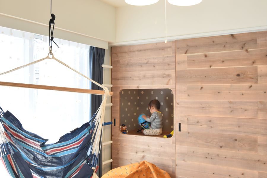 また、遊び心のある隠れ家やハンモックなど子どもが目一杯遊べるようにリノベーションしています。